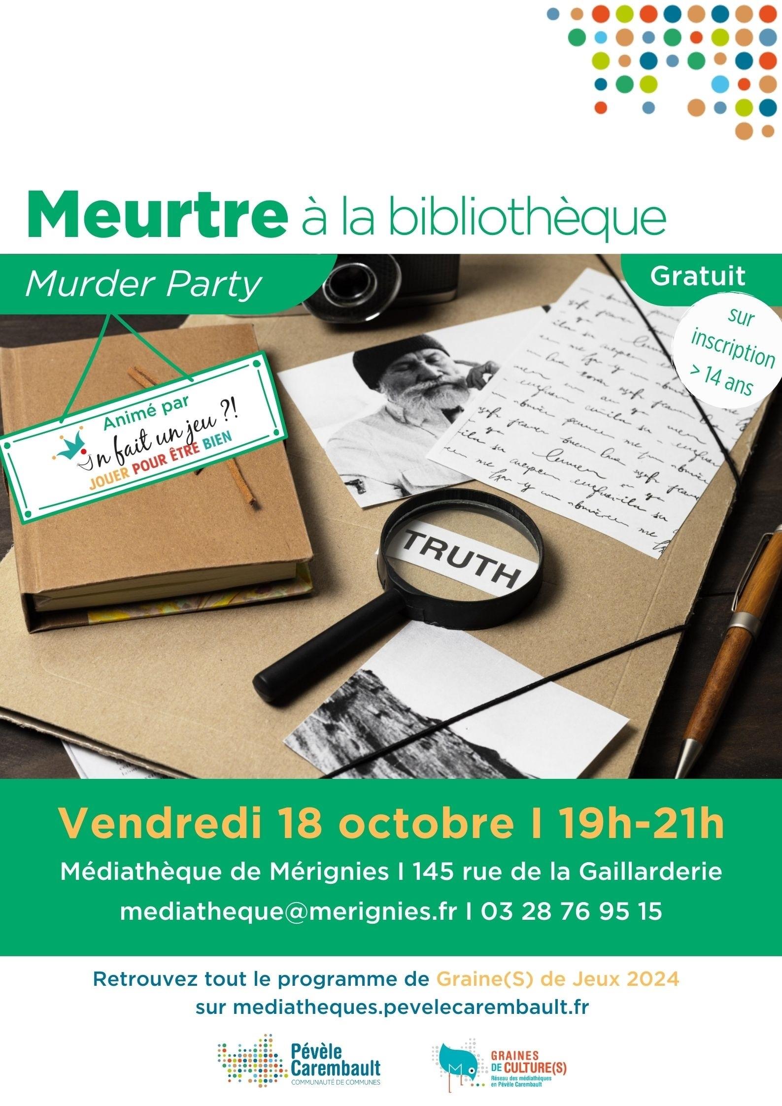 Horreur à la médiathèque ! Lors d'une soirée jeu, le cadavre d'un membre de l'équipe est retrouvé poignardé. Mais qui l'a tué et pourquoi? Devenez apprenti enquêteur et aidez le commissaire Jules Magret à résoudre cette enquête