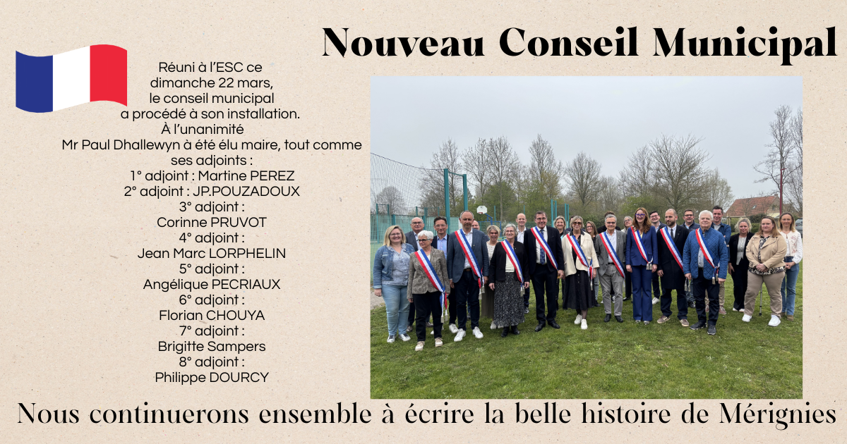 Les élus tiennent à remercier les Mérigniens pour leur confiance et s’engagent à œuvrer, au quotidien, avec sérieux et détermination pour l’avenir de la commune. Ensemble, ils continueront à écrire la belle histoire de Mérignies.