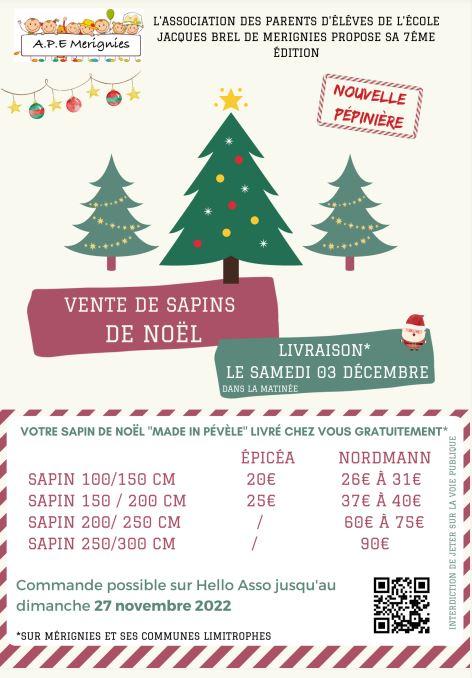 L'Association de Parents d'Elèves de Mérignies est heureuse de vous proposer sa 7ème édition de vente de sapins de Noël !
